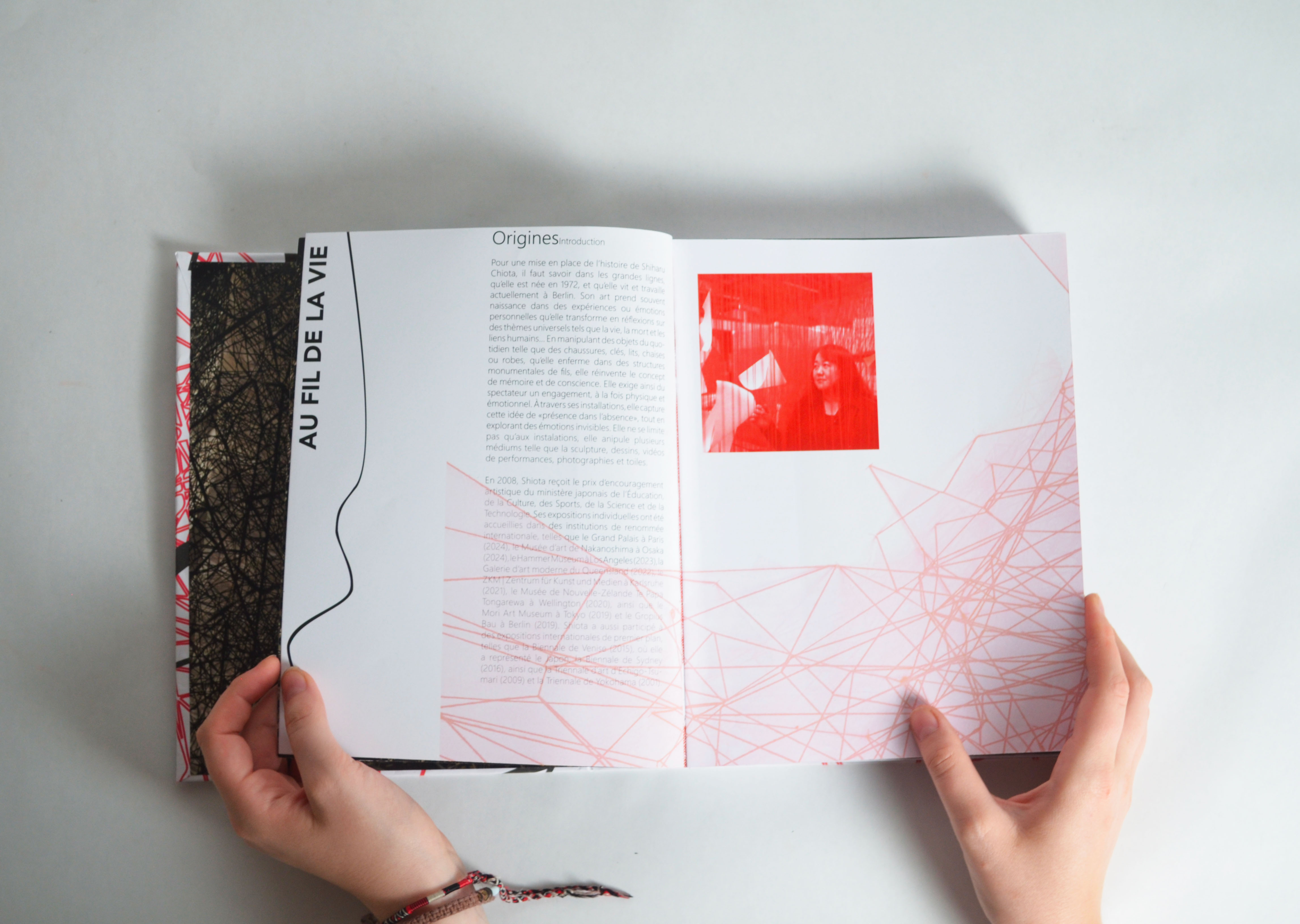 Le coffret d’artiste est consacré à l’artiste Chiharu Shiota. On y retrouve une édition principale accompagnée d’une plus petite, un dépliant, un tote bag sérigraphié, une illustration, deux affiches et trois dépliants d’ombres.